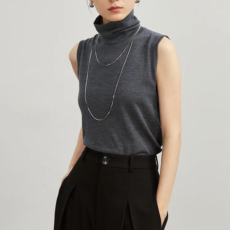 As we navigate through the changing seasons, the quest for versatile, stylish, and comfortable clothing becomes ever more critical. Enter the Chic Charcoal Black Merino Wool Turtleneck Vest, a garment designed to meet the modern woman’s need for a piece that marries the timeless elegance of classic fashion with the practical demands of contemporary life. Whether you’re preparing for an important business meeting or planning a relaxed day out, this vest is poised to ensure you remain at the pinnacle of style and comfort.